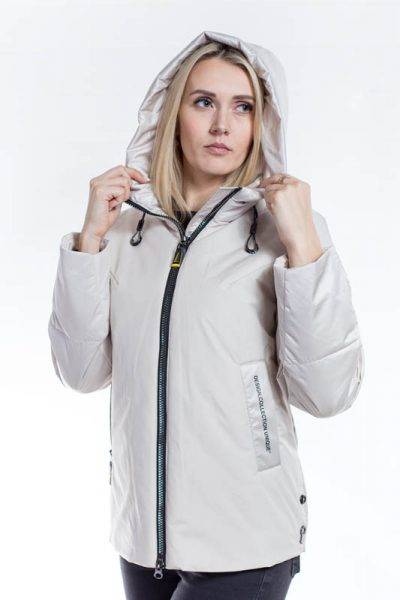 Удобная свелая куртка из тканей-компаньонов с капюшоном и застежкой на молнии для городской среды.