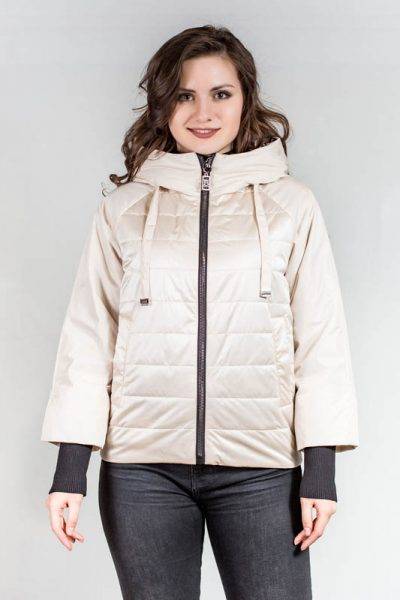Короткая стеганная куртка из тканей- компаньонов блестящей и матовой поверхности. Удобный капюшон с подкладкой с леопардовым принтом. Рукав реглан, укороченный , с отстегивающимся трикотажным манжетом.Стежка горизонтальная.