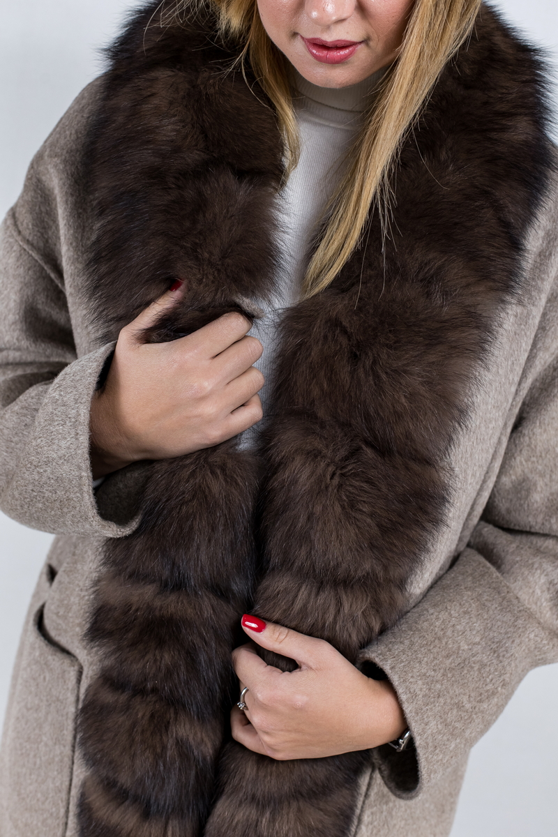 Элегантное, классическое, демисезонное пальто из кашемира. Мягкий, удобный крой, плюс интересная деталь- отстёгивающаяся планка из натурального меха песца по краю борта. Наденьте любимое пальто! В нем Вы великолепны